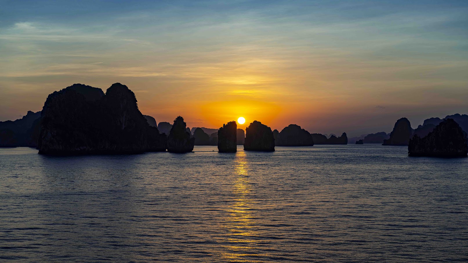 17.30-18.00 Back on board, you will participate in Sunset party & cooking class while the vessel cruises toward the shore. You can enjoy relaxing moments while sipping a cup of traditional Vietnamese tea or coffee on the sundeck amid wonderful scenery and beautiful sunset. Ha Long Bay is calm during the day, but when the sun goes down, the Bay becomes even more tranquil and peaceful.